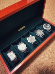 そう私は現在6本所有していますが、仕事に高確率で着用しているロレックス「オイスターパーペチャル」はその着用頻度から常にケース外に出しております。よって今回収納されるのは上記の5本となっております。