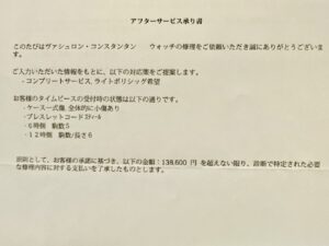 【修理日記②】ヴァシュロン・コンスタンタン「オーヴァーシーズラージ」 ブティックにお願いしてみた!